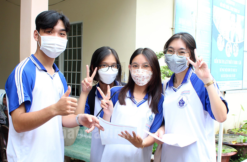 Thí sinh tỉnh Trà Vinh phấn khởi sau khi hoàn thành kỳ thi tốt nghiệp THPT năm 2022.
