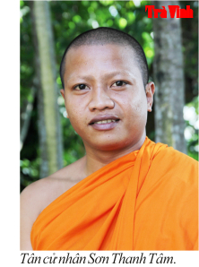 Đó là trường hợp của tân cử nhân Sơn Thanh Tâm, sinh năm 1997, quê quán xã Mỹ Chánh, huyện Châu Thành. Cũng giống như những thanh niên khác là dân tộc Khmer, khi lớn lên phải xuất gia vào chùa tu học. Chính vì vậy, gần 06 tháng cuối của lớp Cao đẳng khóa III chuyên ngành Thú y, tại Trường Cao đẳng Nghề Trà Vinh nhiều bạn bè học cùng lớp với Sơn Thanh Tâm đã chứng kiến người bạn sinh viên áo trắng ngày nào chuyển sang màu áo cam của nhà sư.