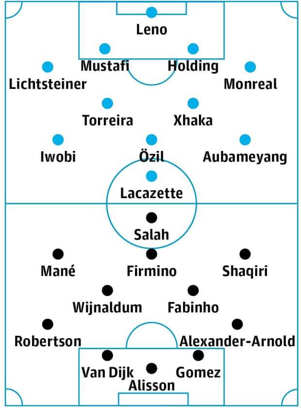 | Thông tin lực lượng - Arsenal: Koscielny, Elneny, Bellerin, Monreal và Kolasinac không thể ra sân vì chấn thương. Guendouzi bị treo giò. - Liverpool: HLV Klopp cũng không có sự phục vụ của 3 tiền vệ Oxlade-Chamberlain, Naby Keita và Henderson. Thông tin bên lề - Liverpool đều ghi được ít nhất 3 bàn thắng mỗi trận trong 5 lần đối đầu gần nhất với Arsenal. - 5 cuộc chạm trán gần đây giữa Arsenal và Liverpool có tổng cộng 27 bàn thắng được ghi (bình quân 5,4 bàn/trận). - Arsenal đều ghi được ít nhất 2 bàn mỗi trận trong 9 vòng đấu vừa qua tại Ngoại hạng Anh. Các Pháo thủ thành London cũng bất bại 7 trận liên tiếp ở sân chơi quốc nội. - Liverpool đang thể hiện chuỗi phong độ cực kỳ ấn tượng ở Premier League khi thắng 9, hòa 2 trận và chỉ để lọt lưới 4 bàn. - Roberto Firmino đều ghi bàn và kiến tạo cho đồng đội ở cả ba cuộc đối đầu với Arsenal gần đây. - Pierre-Emerick Aubameyang 5 lần xé lưới đối phương trong 3 lần xuất hiện tại Ngoại hạng Anh mới nhất. |
