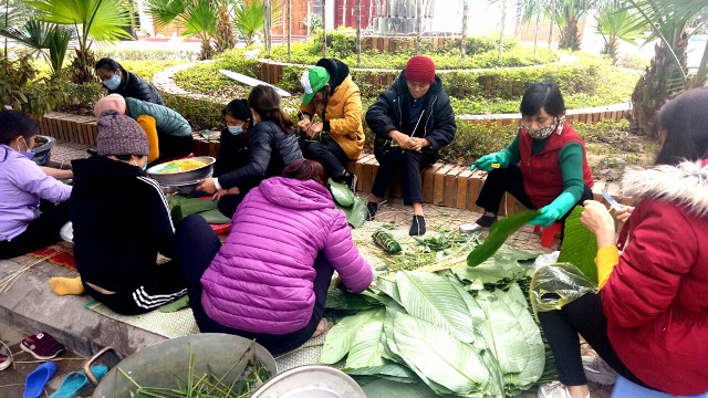 | Các hội viên Hội Chữ thập đỏ và Hội LHPN thị trấn Ba Chẽ gói bánh chưng tặng các chốt liên ngành phòng, chống dịch COVID-19 (Ảnh: Theo Báo Quảng Ninh) |