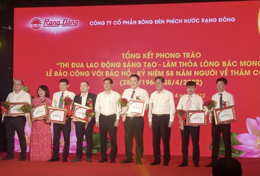 Kỷ niệm 58 năm ngày Bác Hồ về thăm nhà máy (28/4/1964- 28/4/2022), ngày 28/4, Công ty cổ phần Bóng đèn Phích nước Rạng Đông tổ chức tổng kết phong trào “Thi đua lao động sáng tạo, làm thỏa lòng Bác mong”, biểu dương, khen thưởng các công trình đổi mới sáng tạo trong Ngày hội sáng tạo lần 5 và các tập thể cá nhân xuất sắc trong năm thi đua lập công dâng Bác.