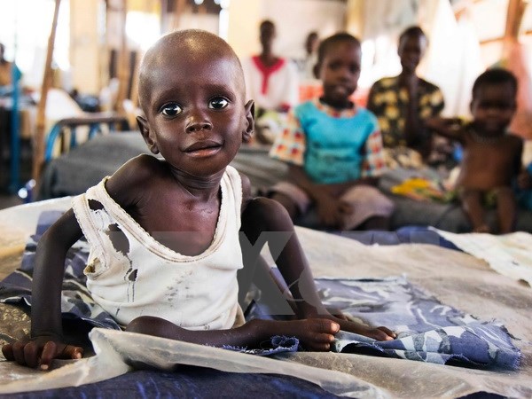 Trẻ em Sudan bị suy dinh dưỡng điều trị tại một bệnh viện ở Aweil. (Nguồn: AFP/TTXVN)