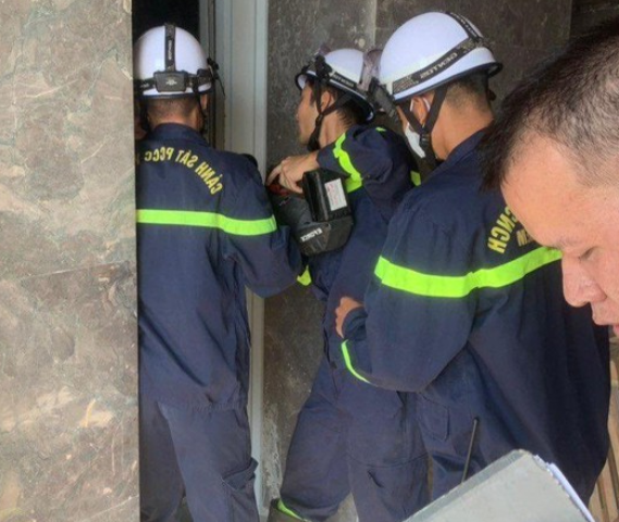 Sau 15 phút, cảnh sát có mặt tại hiện trường. Lực lượng chức năng trấn an người bị kẹt trong thang máy, đồng thời sử dụng thiết bị chuyên dụng để mở cửa thang.