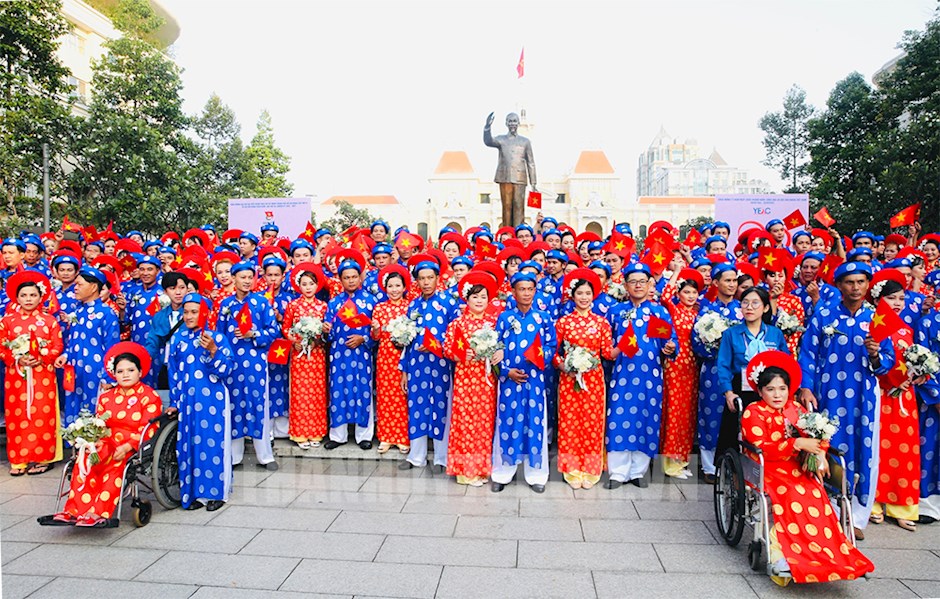 Với chủ đề “Tôn vinh nét đẹp văn hóa Việt”, lễ cưới năm nay tiếp tục mang đến niềm vui cho 100 đôi đang làm việc, lao động ở nhiều lĩnh vực, công việc khác nhau trên địa bàn TP. Đối tượng được tổ chức lễ cưới long trọng này là những người lao động có hoàn cảnh khó khăn, cán bộ công nhân viên, thanh niên công nhân, giáo viên… Đây là món quà ý nghĩa dành tặng những công nhân, cán bộ Đoàn, giáo viên, tình nguyện viên phòng, chống dịch COVID-19, người khuyết tật… có hoàn cảnh khó khăn, chịu ảnh hưởng nặng của dịch bệnh.