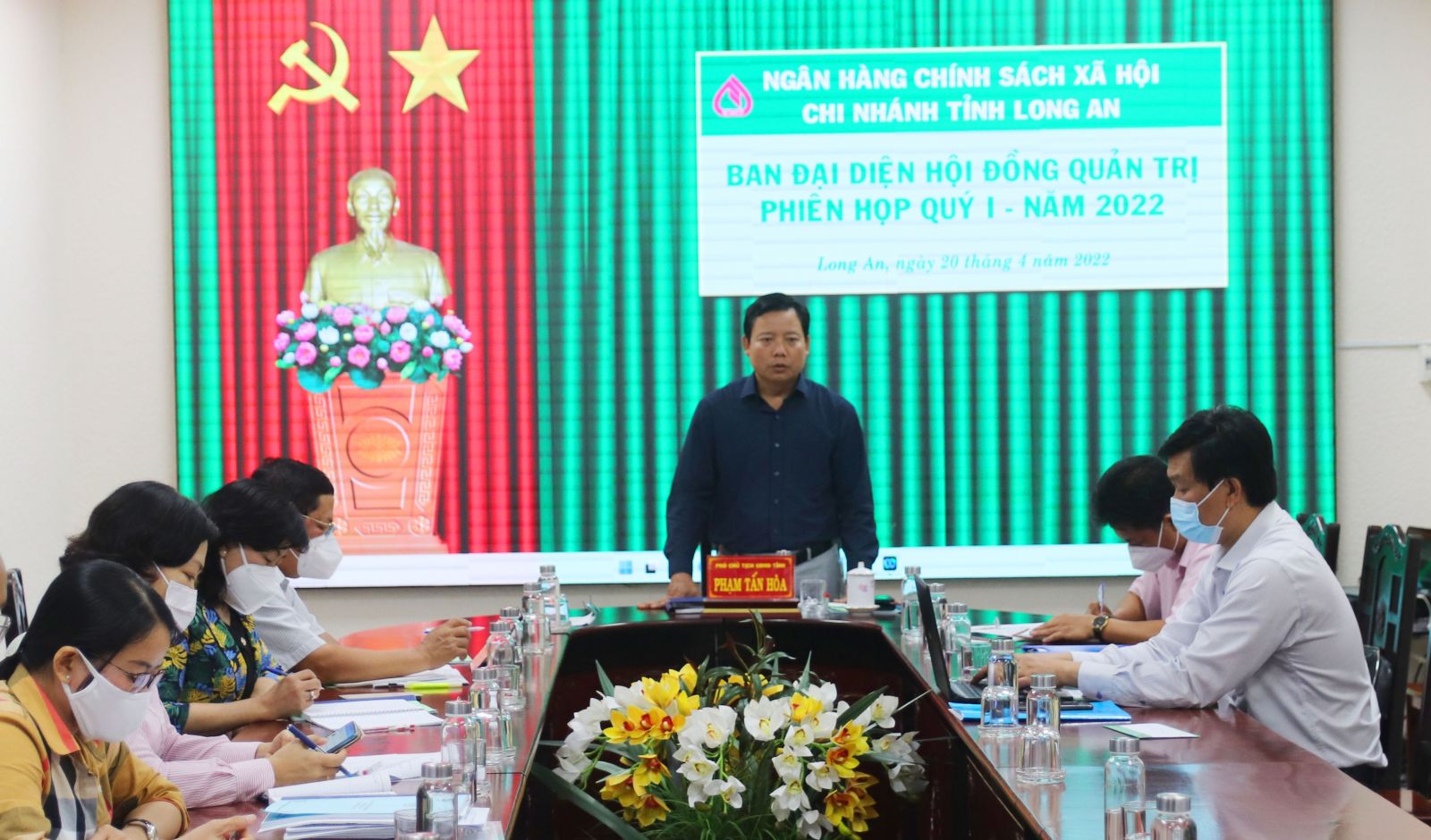 Trong quí I/2022, Chi nhánh NHCSXH tỉnh Long An đã thực hiện nghiêm túc yêu cầu phòng, chống dịch Covid-19, thích ứng linh hoạt trong triển khai nhiệm vụ; bám sát chỉ đạo của Tỉnh ủy, UBND tỉnh và NHCSXH Việt Nam, Nghị quyết của Ban đại diện Hội đồng quản trị tỉnh.