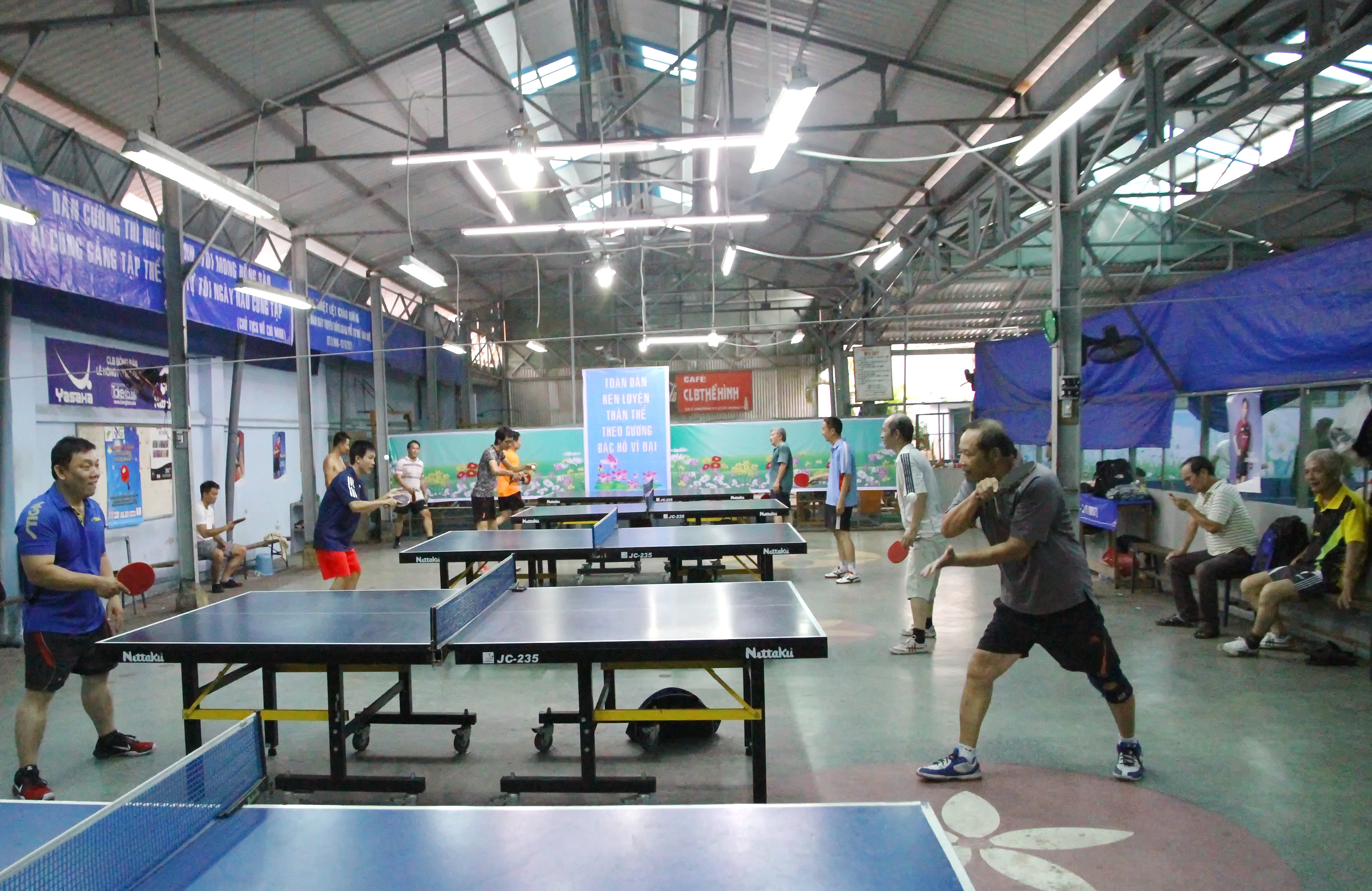 Do diện tích chật hẹp nên nhiều CLB bóng bàn ở TP.HCM khó có thể lắp đặt tấm chắn theo dự thảo thông tư quy định. Ảnh: T.P