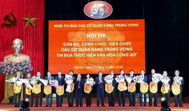 Ngày 07/11, tại Học viện Chính trị quốc gia Hồ Chí Minh, Hội thi “Cán bộ, công chức, viên chức các cơ quan Đảng Trung ương thi đua thực hiện văn hóa công sở” đã diễn ra với sự tham gia của 14 cơ quan trong khối bao gồm: Ban Tuyên giáo Trung ương, Ban Tổ chức Trung ương, Ủy ban Kiểm tra Trung ương, Ban Kinh tế Trung ương, Ban Dân vận Trung ương, Ban Nội chính Trung ương, Văn phòng Trung ương Đảng, Ban Đối ngoại Trung ương, Học viện Chính trị quốc gia Hồ Chí Minh, Báo Nhân Dân, Tạp chí Cộng sản, Nhà xuất bản Chính trị quốc gia Sự thật, Đảng ủy Khối Cơ quan Trung ương, Đảng ủy Khối Doanh nghiệp Trung ương.