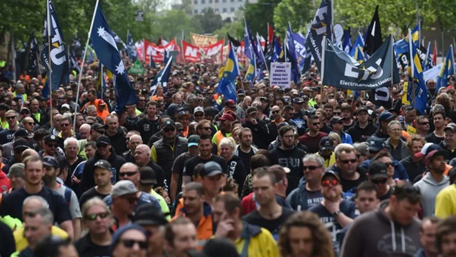 Công nhân tham gia biểu tình. (Nguồn: smh.com.au)