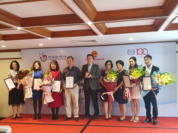Một số tác giả có tác phẩm được giải báo chí viết về phòng ngừa lao động trẻ em. (Ảnh: PV/Vietnam+)