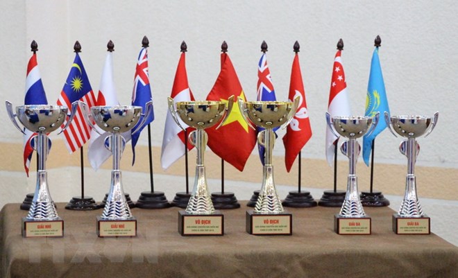 Cúp giành cho các đội đạt thành tích cao nhất giải. (Ảnh: Thanh Sang/TTXVN)