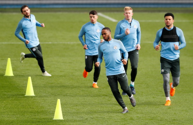 Các cầu thủ Manchester City trên sân tập hôm 09/4. Ảnh: REUTERS