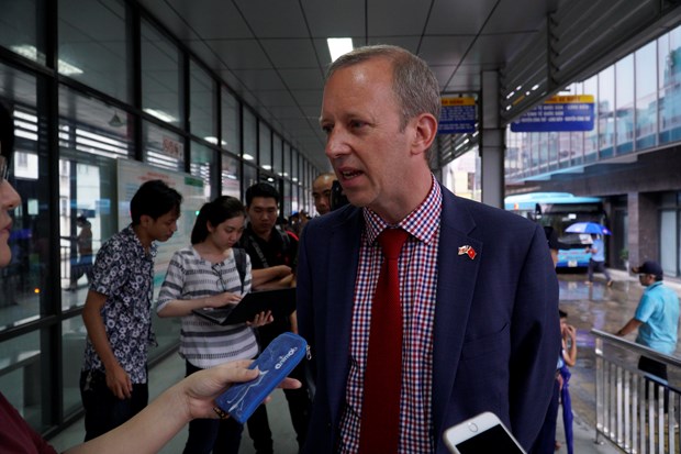 Đại sứ Anh tại Việt Nam Gareth Ward phát biểu tại sự kiện. (Ảnh: Minh Hiếu/Vietnam+)