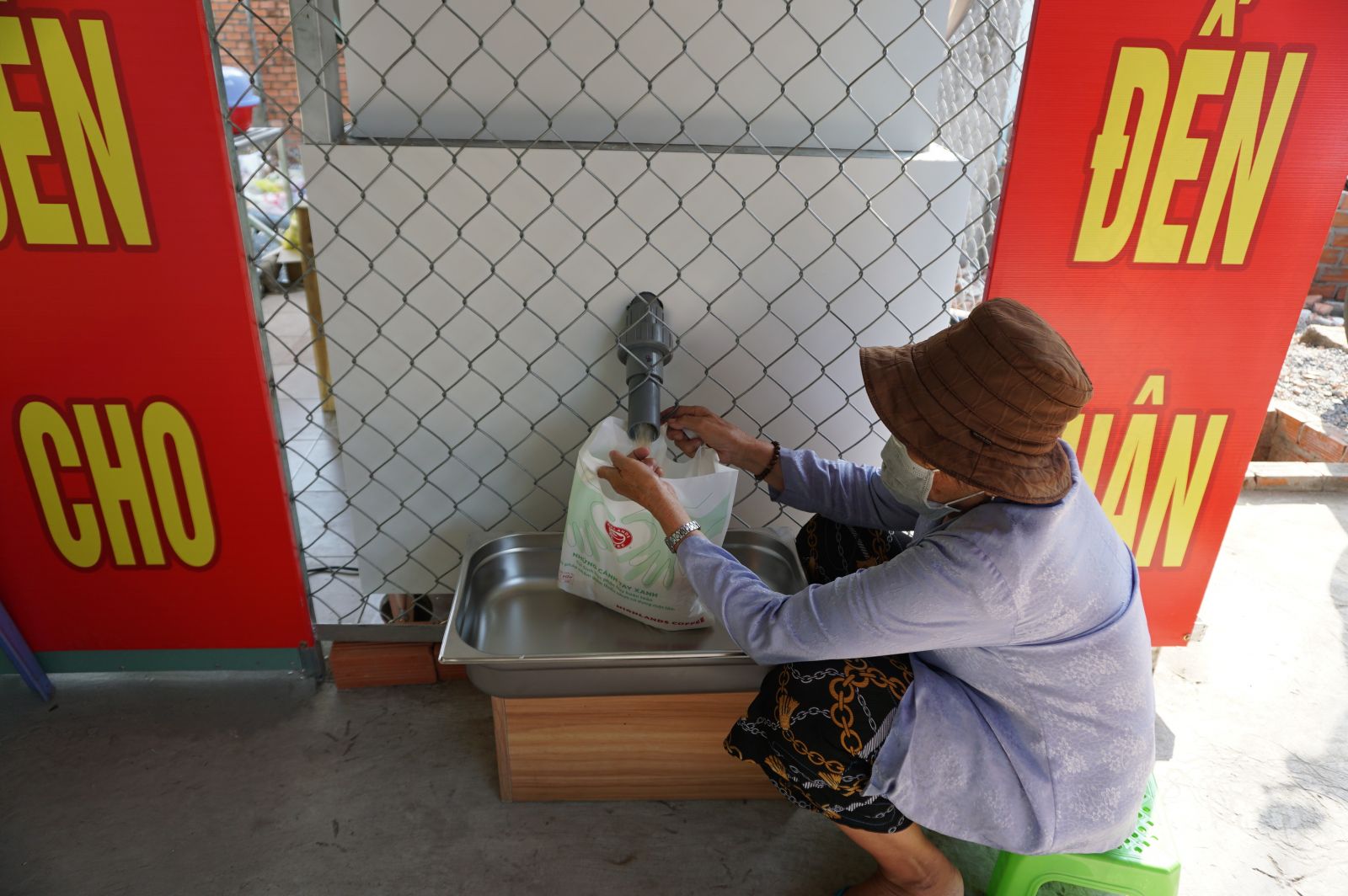 Người dân nhận gạo tại ATM gạo nghĩa tình. Ảnh: Phương Cảnh - Thất Huy