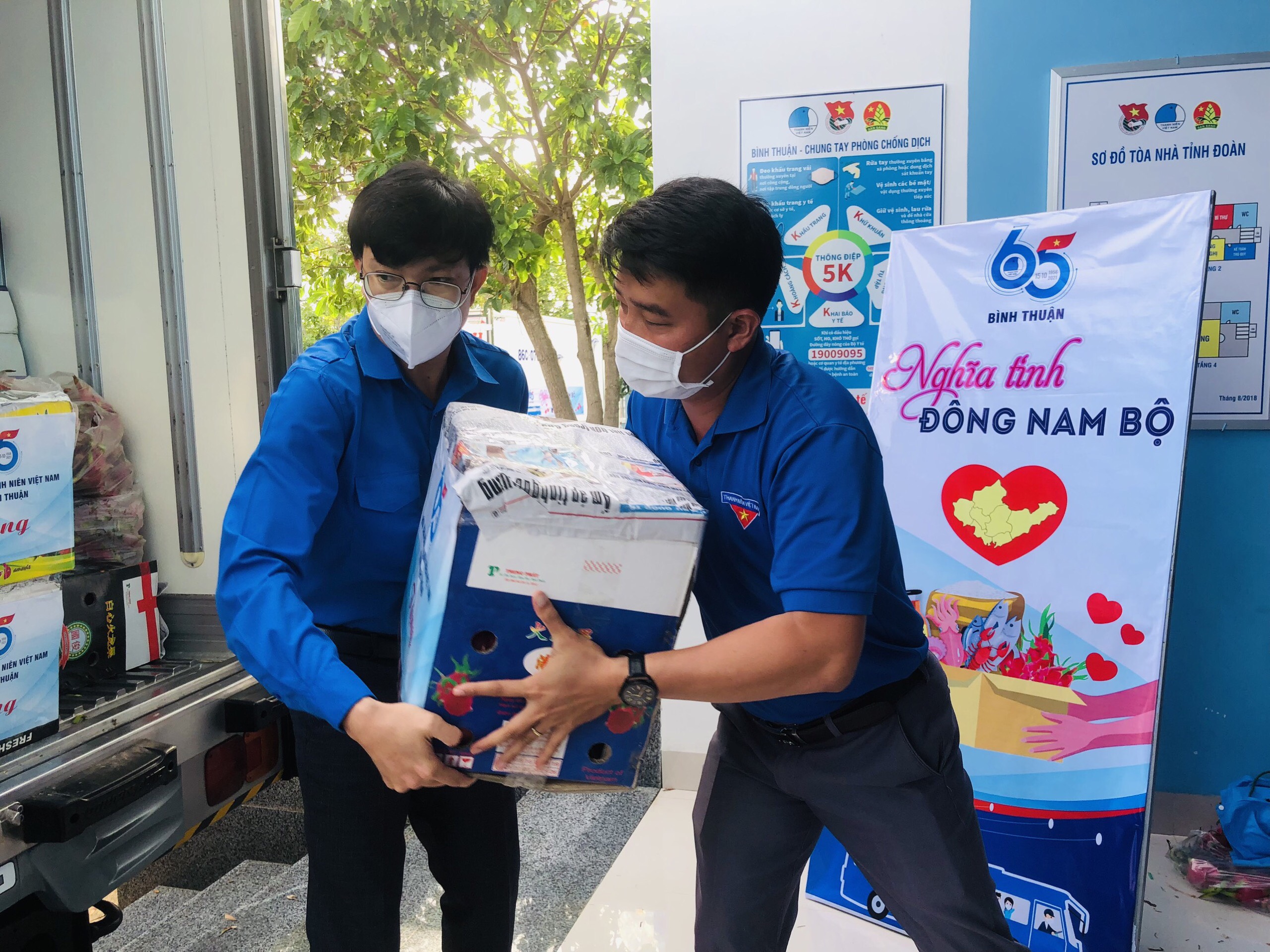 Hội LHTN Việt Nam tỉnh Bình Thuận đã phát đi thông điệp cùng san sẻ yêu thương, qua đó kêu gọi các nhà hảo tâm, quý mạnh thường quân, các công ty doanh nghiệp, các tổ chức, cá nhân cùng đồng hành, chung tay ủng hộ Chương trình “Nghĩa tình Đông Nam bộ” với chuyến xe nghĩa tình hỗ trợ nhu yếu phẩm hỗ trợ cho nhân dân tỉnh Bình Dương đang bị ảnh hưởng bởi dịch bệnh COVID-19 bao gồm: Thanh long, rau củ và hải sản (cấp uỷ, chính quyền, Mặt trận, các đoàn thể và nhân dân huyện Phú Quý hỗ trợ).. lên tới 20 tấn hàng hóa.