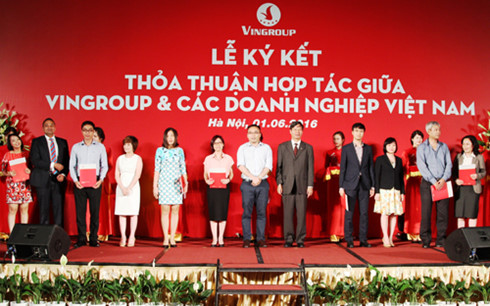 Trong số này, hơn 140 doanh nghiệp đã ký kết hợp tác về phân phối, theo đó trong vòng một năm, từ 1/6/2016 đến 1/6/2017 các doanh nghiệp trên sẽ được hỗ trợ đưa hàng vào hệ thống siêu thị Vinmart của Vingroup với các điều kiện ưu đãi hợp lý.
