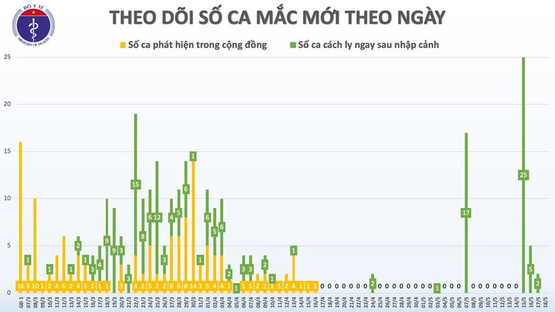 Theo Bộ Y tế, đến 6h sáng 18/5, Việt Nam không ghi nhận ca mắc Covid-19 mới.