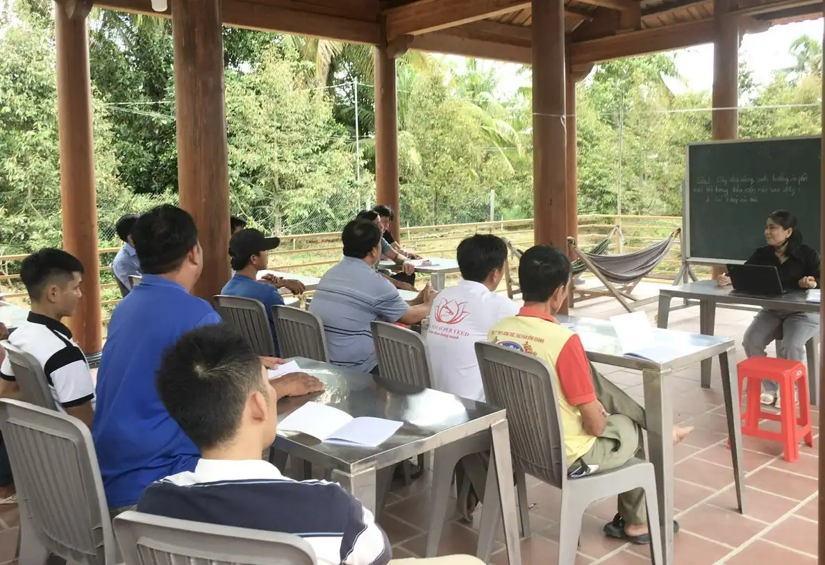 Học viên lớp đào tạo nghề trồng cây ăn trái tại phường Thới Long, quận Ô Môn.