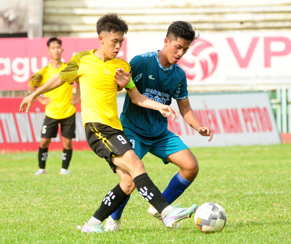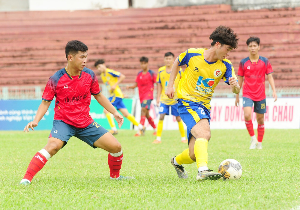 Đội bóng Cần Giuộc (áo vàng) đứng đầu bảng A