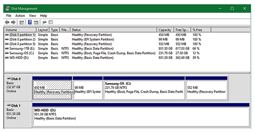 Để biết dung lượng của phân vùng phục hồi, bạn nhấp chuột phải vào nút Start, hay nhấn tổ hợp phím Win + X, rồi chọn Disk Management trong danh sách. Trong cửa sổ Disk Management vừa mở ra, bạn sẽ dễ dàng nhìn thấy dung lượng của phân vùng phục hồi (Recovery Partition).