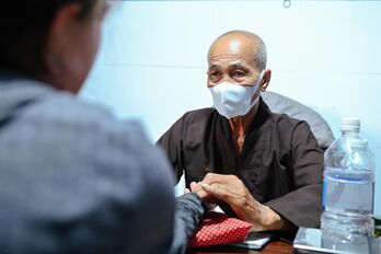 Lương y Phan Văn Thanh châm cứu cho bệnh nhân