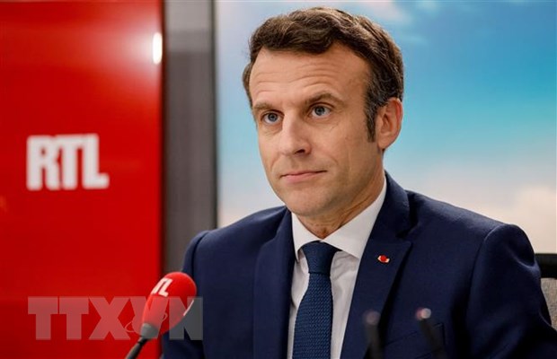 Tổng thống Pháp Emmanuel Macron phát biểu tại Neuilly-sur-Seine, Pháp, ngày 8/4/2022. (Ảnh: AFP/TTXVN)