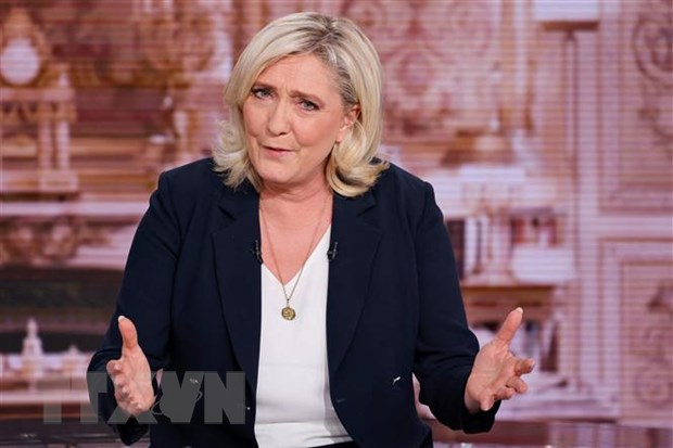 Bà Marine Le Pen, ứng cử viên cánh hữu tham gia cuộc bầu cử Tổng thống Pháp 2022, trả lời phỏng vấn của kênh truyền hình TF1 tại Boulogne-Billancourt, ngoại ô Paris, ngày 6/4/2022. (Ảnh: AFP/TTXVN)