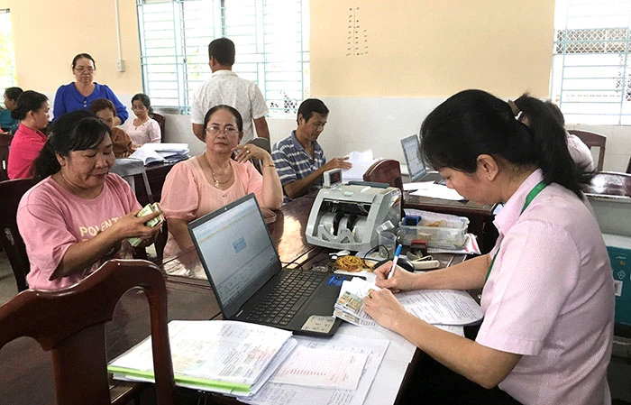 Phòng giao dịch Ngân hàng Chính sách xã hội huyện Thới Lai đang giải ngân vốn chương trình tại điểm giao dịch xã Xuân Thắng.