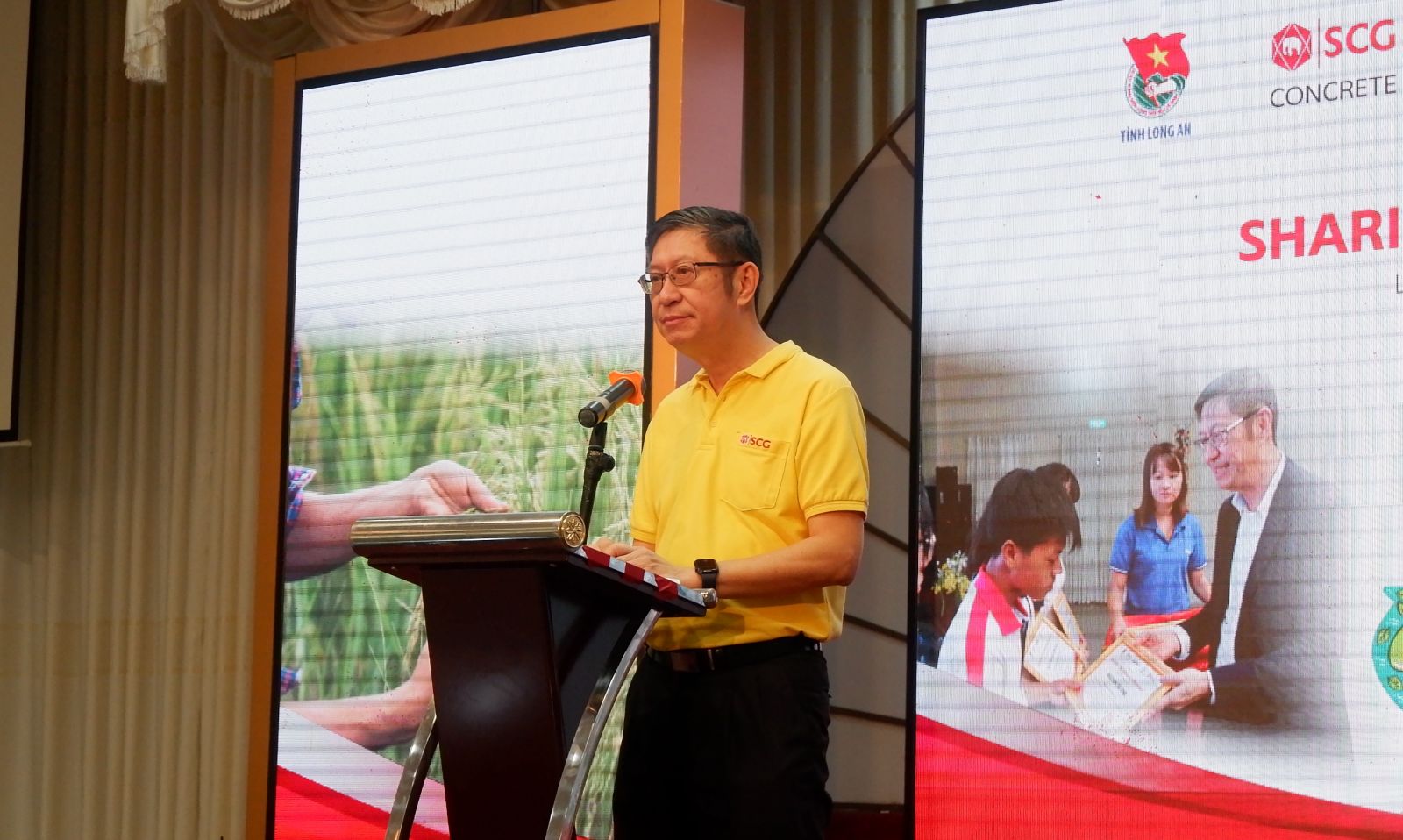 Tổng Giám đốc Công ty Cổ phần Bao Bì Tín Thành - Somchart Patamamongkonchai (thuộc ngành Kinh doanh bao bì của SCG, đang hoạt động tại tỉnh Long An) cho biết: "Trong năm qua, đại dịch đã gây ảnh hưởng nặng nề đến sinh viên, đặc biệt là các em có hoàn cảnh gia đình khó khăn, càng khiến cho việc học trở nên gian nan hơn. Dù vậy, các em vẫn giữ niềm đam mê học tập, quyết tâm vượt qua những trở ngại của cuộc sống, tiếp tục tiến bước trên con đường học vấn. Chính vì vậy, Tập đoàn SCG muốn tiếp thêm sức mạnh giúp đỡ các em vượt qua khó khăn trong cuộc sống, tiếp thêm tinh thần học tập, giúp các em trở thành những công dân có ích cho xã hội.