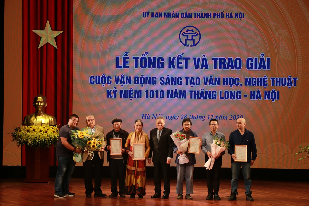 Tối 28/12, Lễ Tổng kết và Trao giải Cuộc vận động sáng tạo văn học, nghệ thuật kỷ niệm 1010 năm Thăng Long - Hà Nội diễn ra tại Nhà hát Kịch Hà Nội.