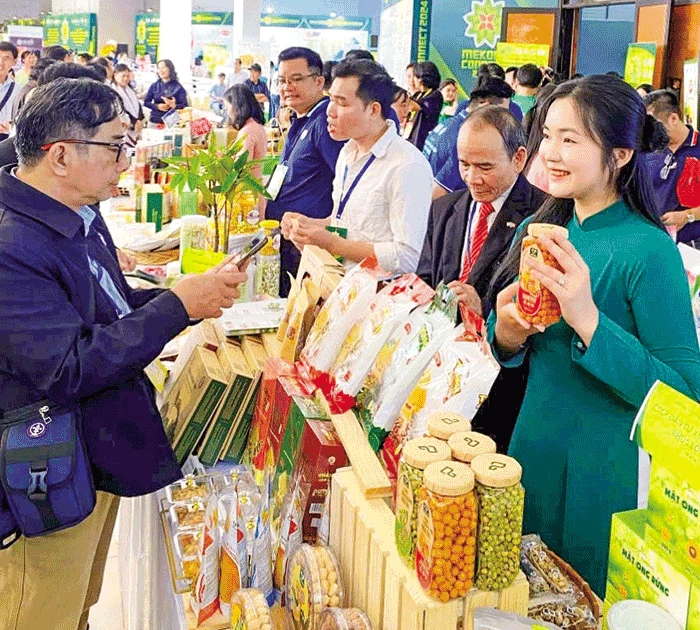 Công ty TNHH DG Foods là một trong những doanh nghiệp của TP Cần Thơ đạt nhãn hiệu chứng nhận HVNCLC 2025 do người tiêu dùng bình chọn. Trong ảnh: Công ty TNHH DG Foods, trưng bày, giới thiệu sản phẩm tại một hội nghị. Ảnh: CTV