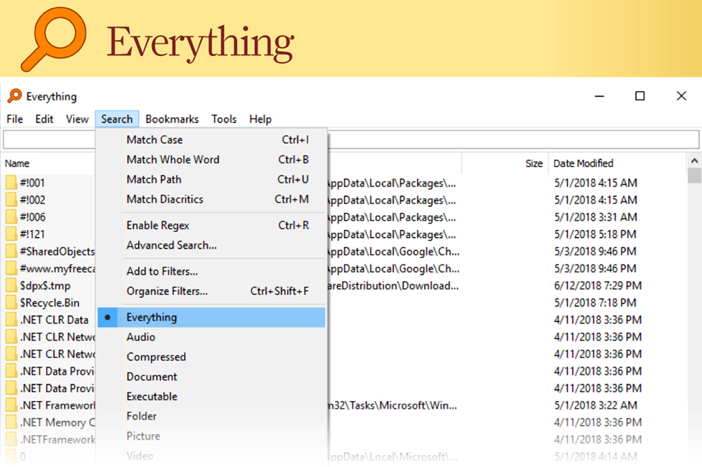 Everything sẽ giúp bạn tìm thấy các tập tin trên máy tính Windows rất nhanh. Bắt đầu bằng cách nhập các chữ cái của tên tập vào hộp tìm kiếm, nó sẽ thu hẹp kết quả ngay lập tức. Bạn càng nhập nhiều chữ cái, danh sách kết quả tìm kiếm càng ngắn để việc tìm kiếm càng nhanh. Kết quả tìm kiếm được xem dưới dạng hình thu nhỏ và Everything cũng thực hiện việc này nhanh chóng tạo ra hình ảnh xem trước của ảnh theo chế độ này.