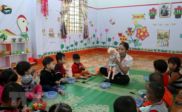 Giờ học của lớp mẫu giáo 3 tuổi trường Mầm non số 2 thị trấn Phong Hải, huyện Bảo Thắng, tỉnh Lào Cai. (Ảnh: Quốc Khánh/TTXVN)