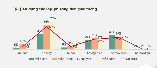 Kết quả khảo sát cho thấy, mức độ sử dụng các loại PTGTĐ hiện nay nhiều nhất là xe máy điện 33%, xe đạp điện 27% và ô tô điện 2%. Các PTGTĐ mới được sự dụng phổ biến trong 3 năm trở lại đây, chiếm tỷ lệ 79%. Tuy mức độ sử dụng còn khiêm tốn, nhưng tín hiệu đáng mừng là mức độ gia tăng sở hữu các loại PTGTĐ tại Việt Nam những năm trở lại đây đang ngày càng phổ biến.