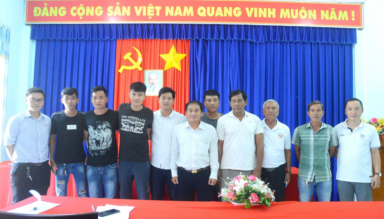 Đại diện 8 đội bóng cùng Ban tổ chức tại lễ bốc thăm chia bảng