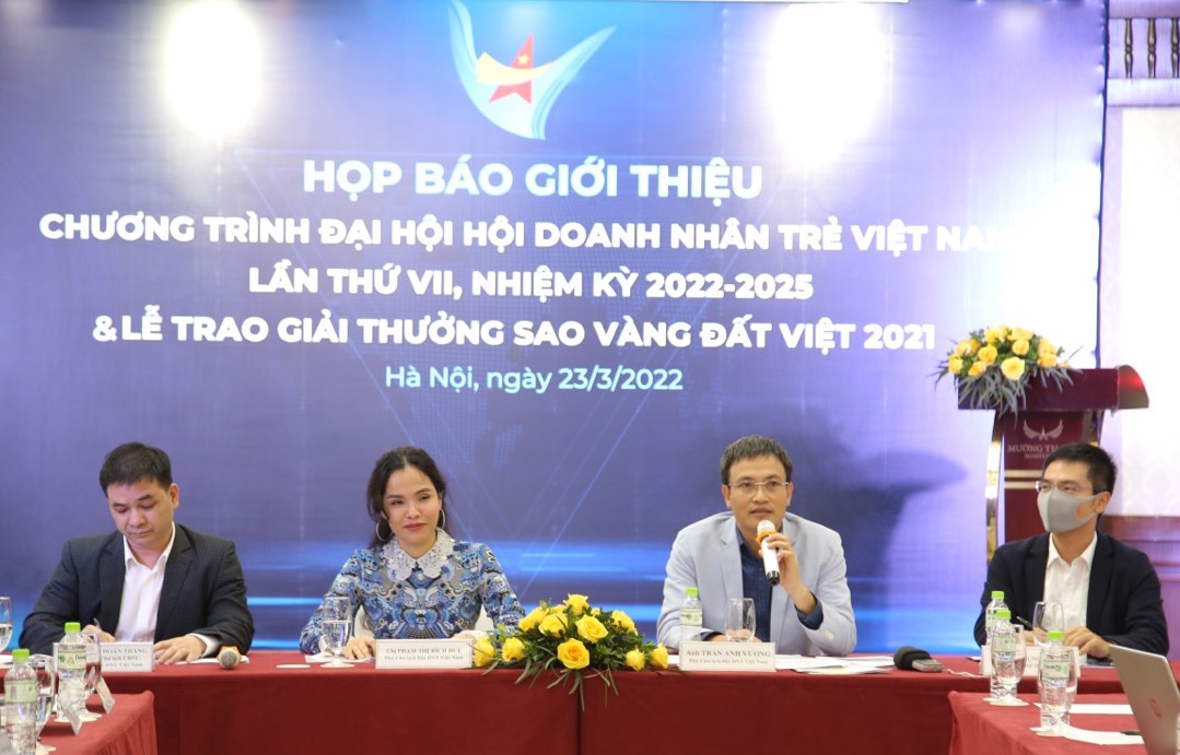 Ngày 23/3 tại Hà Nội, Hội Doanh nhân trẻ Việt Nam tổ chức họp báo giới thiệu chương trình Đại hội Doanh nhân trẻ Việt Nam lần thứ VII, nhiệm kỳ 2022-2025 và lễ trao giải thưởng Sao vàng đất Việt 2021.