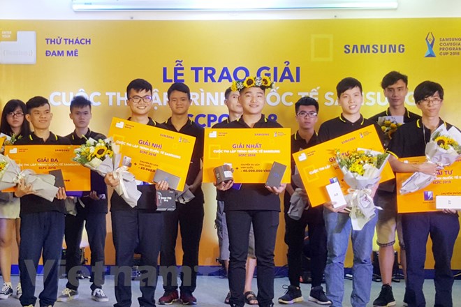 Sáng 28/7, Trung tâm Nghiên cứu và Phát triển điện thoại di động Samsung (SVMC) đã tổ chức Lễ trao giải Cuộc thi Lập trình Quốc tế Samsung Collegiate Programming Cup 2018 (SCPC 2018) và công bố 10 thí sinh xuất sắc được Samsung tài trợ để đại diện cho Việt Nam tham dự vòng chung kết sẽ diễn ra tại Samsung Hàn Quốc vào ngày 31/7.