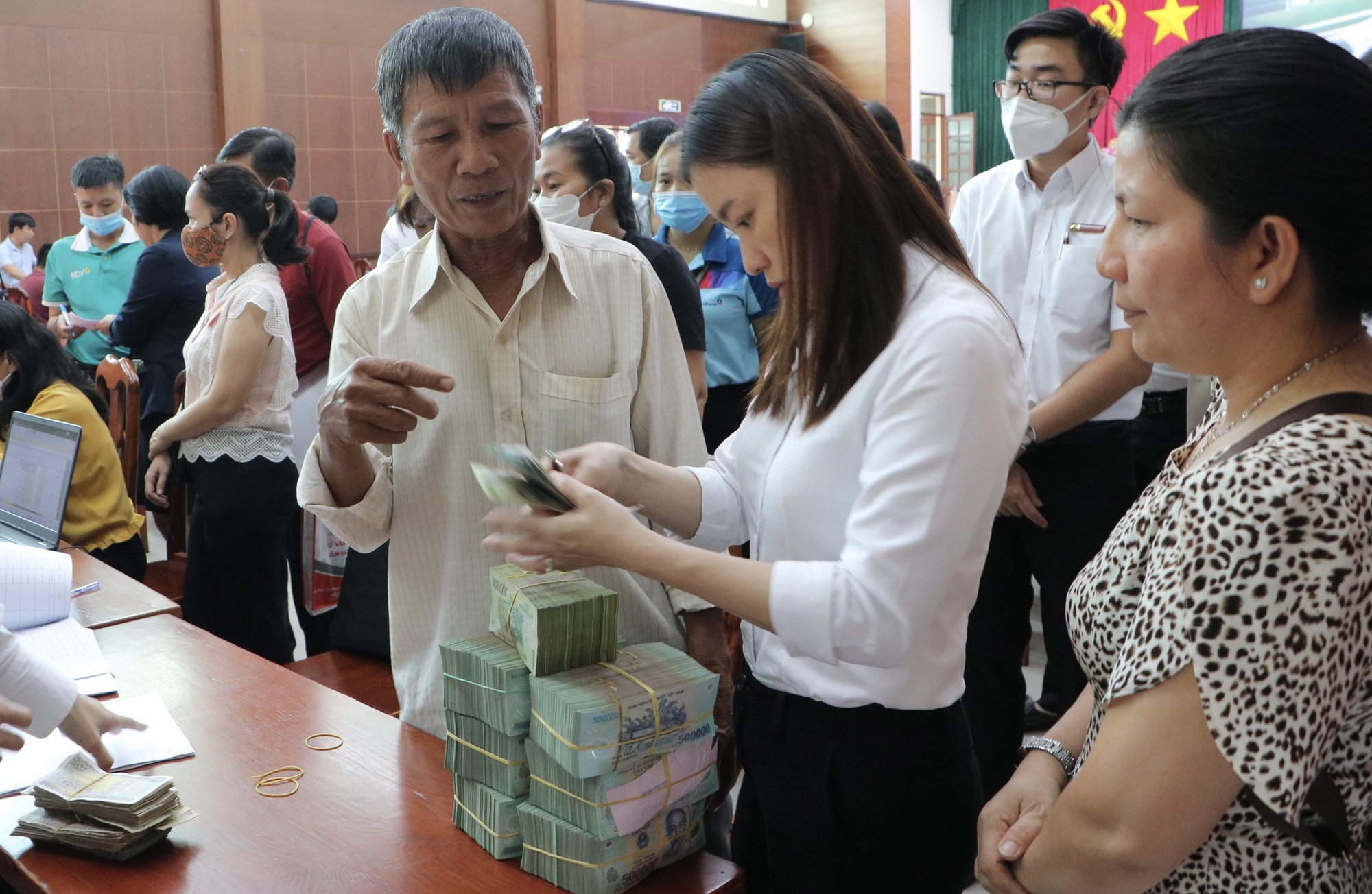 | Người dân nhận tiền hỗ trợ, bồi thường dự án xây dựng đường kết nối sân bay Long Thành. (Nguồn ảnh: danviet.vn) |