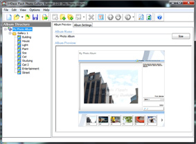 Để tạo một album mới, bạn hãy nhấn vào menu File > New (Ctrl + N) hoặc nhấn vào biểu tượng tờ giấy trắng nằm góc trên bên trái của giao diện chương trình. Hộp thoại Choose Album Template xuất hiện ngay sau đó sẽ cung cấp một số mẫu Template với chủ đề và hiệu ứng khác nhau, bạn hãy chọn một mẫu theo ý mình và nhấn vào nút OK. Lúc này giao diện chương trình sẽ chia làm 2 phần, ở khung bên trái sẽ hiển thị các mẫu bên trong khung Album Structure, khung bên phải gồm 2 thẻ: thẻ Album Preview và thẻ Album Settings. Trong thẻ Album Preview bạn có thể xem cách trưng bày, bố trí các bức ảnh cùng các hiệu ứng đặc biệt. Còn thẻ Album Settings là nơi mà bạn có thể tinh chỉnh các thuộc tính của Album như kích thước hiển thị, nhạc nền...