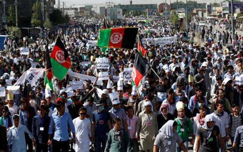 Đoàn người biểu tình ngày 23/7 tại Kabul (Ảnh: Reuters)