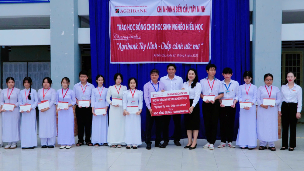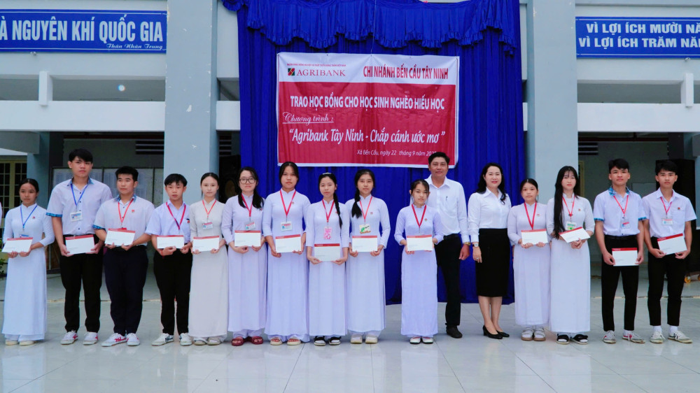 Thực hiện chương trình “Agribank Tây Ninh - Chắp cánh ước mơ”, Agribank Chi nhánh Bến Cầu - Tây Ninh sẽ trao 400 suất học bổng, tổng trị giá 400 triệu đồng, cho học sinh có hoàn cảnh khó khăn tại 12 trường thuộc 3 xã Bến Cầu, Long Thuận và Long Chữ.