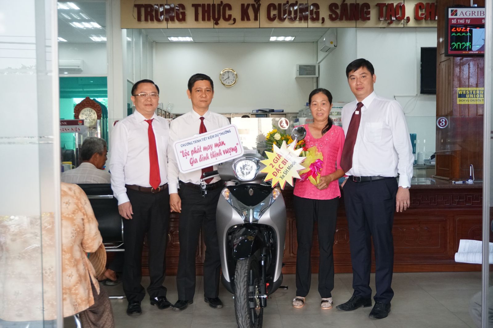 Agribank chi nhánh Đông Long An chúc mừng khách hàng trúng thưởng xe máy SH Mode