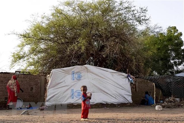 Người dân phải rời bỏ nhà cửa do xung đột sơ tán tới nơi ở tạm tại Hasahisa, Sudan, ngày 10/7/2023. (Ảnh: AFP/TTXVN)