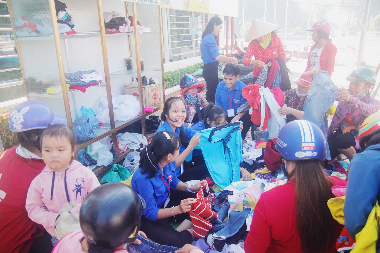 Mỗi lần tủ quần áo hoạt động, người dân xung quanh đem quà bánh, nước uống đến để ủng hộ tinh thần của các “chiến sĩ” tình nguyện.