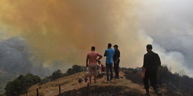 Đám cháy trên ngọn đồi ở Kabylie (Algeria) hồi tháng 8/2021. (Nguồn: Jeune Afrique)