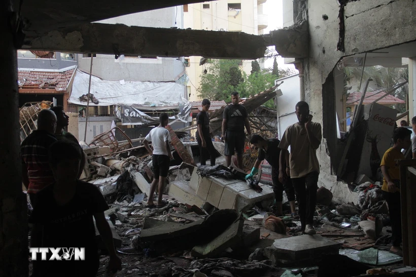 Hiện trường đổ nát sau vụ không kích của Israel nhằm vào một trường học ở Daraj, lân cận thành phố Gaza ngày 10/8/2024. (Ảnh: THX/TTXVN)
