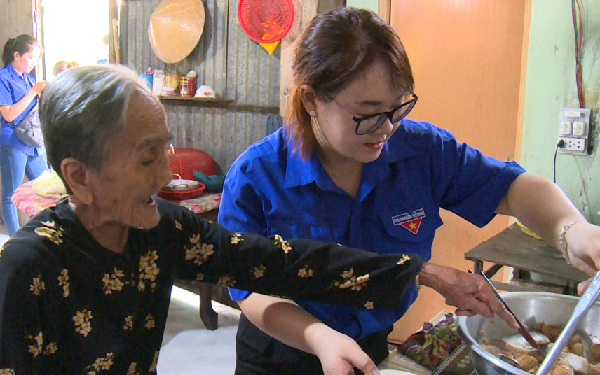 Một ngày cuối tháng 7, những đoàn viên, thanh niên (ĐVTN) có mặt tại nhà Mẹ VNAH Võ Thị Xê (xã Nhơn Thạnh Trung, TP.Tân An) để thăm hỏi sức khỏe mẹ, cùng thắp nén hương tri ân lên bàn thờ liệt sĩ, sau đó vệ sinh nhà cửa, đi chợ, nấu ăn,... Vẫn là công việc bếp núc quen thuộc nhưng ngôi nhà Mẹ VNAH Võ Thị Xê trở nên ấm áp hơn ngày thường. ĐVTN, học sinh, mỗi người một việc, chẳng bao lâu, mâm cơm có đủ các món rau, thịt, cá đã được dọn ra. Mọi người quây quần cùng mẹ bên mâm cơm nghĩa tình.