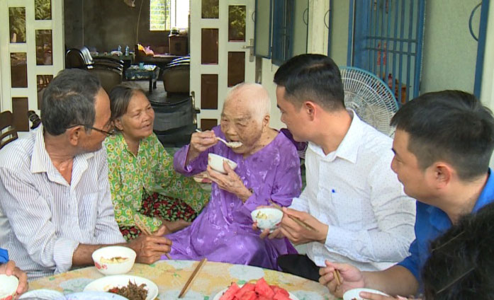 Đoàn viên, thanh niên và lãnh đạo địa phương đến thăm và ăn bữa cơm cùng Mẹ Việt Nam Anh hùng Nguyễn Thị Nhu