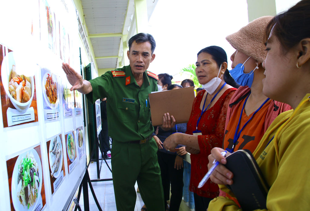 Thân nhân phạm nhân được cán bộ Trại giam Thạnh Hòa giới thiệu về các món ăn tại căn tin của trại giam