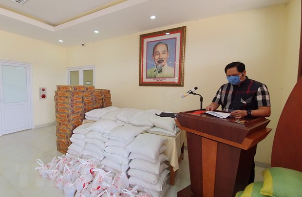 Theo phóng viên TTXVN tại Campuchia, số quà trao tặng bà con (gồm 1 tấn gạo, mỳ gói, dầu ăn và cá hộp) do cán bộ, nhân viên Tổng Lãnh sự quán quyên góp cùng với sự tham gia của Công ty Viettel Cambodia (Metfone) thuộc Tập đoàn Viettel và các doanh nghiệp của người gốc Việt là Kim Chang và Công ty Quang Trung.