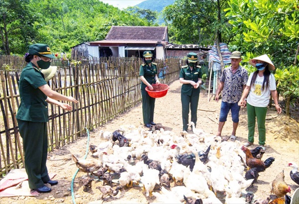 | Cán bộ, hội viên Hội Phụ nữ BĐBP tỉnh Quảng Ninh hướng dẫn người dân vùng biên phát triển kinh tế. (Ảnh: NTP) |
